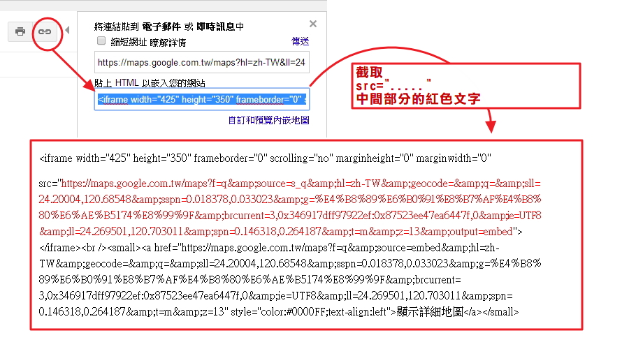 | 除了標記中指定長寬以外. 可將Iframe放置於Table中,複製或修改以下的Iframe程式碼: |